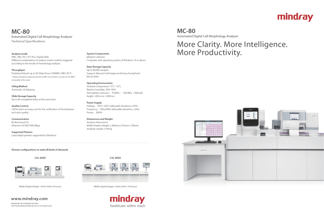 A série BC-700 integra um módulo de VHS automático em um analisador hematológico. Ela também pode gerar resultados tanto de CSC quanto de VHS em um teste dentro de 1,5 minuto. Além disso, ele economiza nos custos de compra, manutenção, consumíveis e espaço de armazenamento de um analisador de VHS separado. Em comparação com o metodologia Westergren tradicional, este método tem melhor desempenho em rastreabilidade de qualidade, repetibilidade, velocidade, segurança e nível de automação.