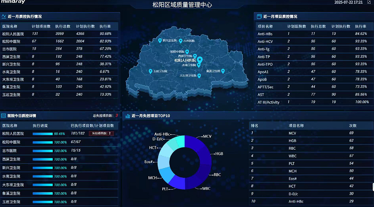 制定统一的检验质控标准、操作规范及结果互认规则,并利用信息化手段监管全域各级实验室质控情况,通过数据大屏远程监控,提升县域内检验质量的同质化管理水平。