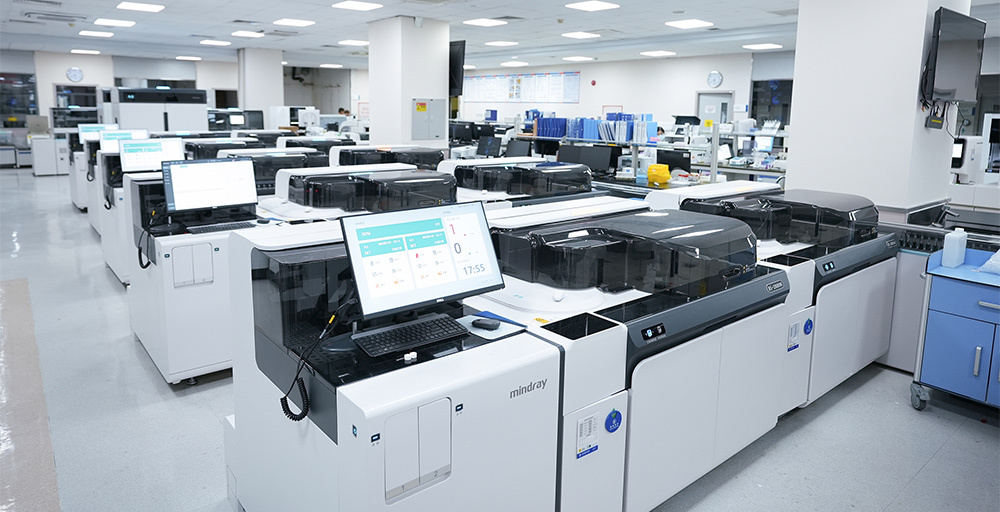 走进整合了血球、生化、免疫、凝血、糖化血红蛋白及特种蛋白检测的多学科的东莞康华检验科数智实验室,繁复的人工操作已成过去,但检验前、中、后的每一环节依然被精准控制。