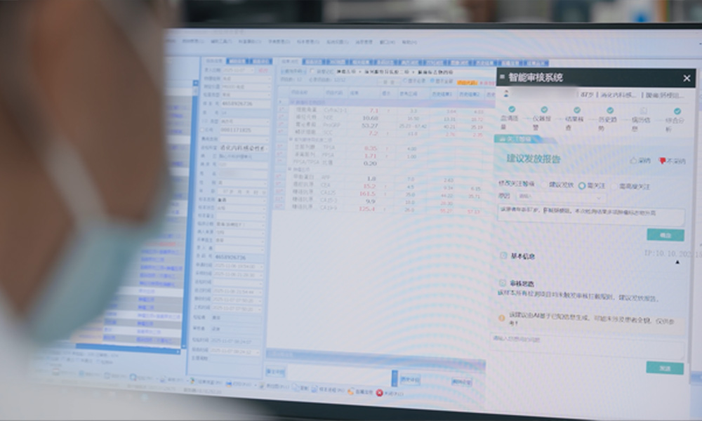 缺人,人经验、精力不够,怎么办?在医院的整体部署下,科室与迈瑞医疗合作研发、训练启元检验大模型,首要聚焦智能审核—这一影响科室检验报告发放效率和质量的关键功能。
