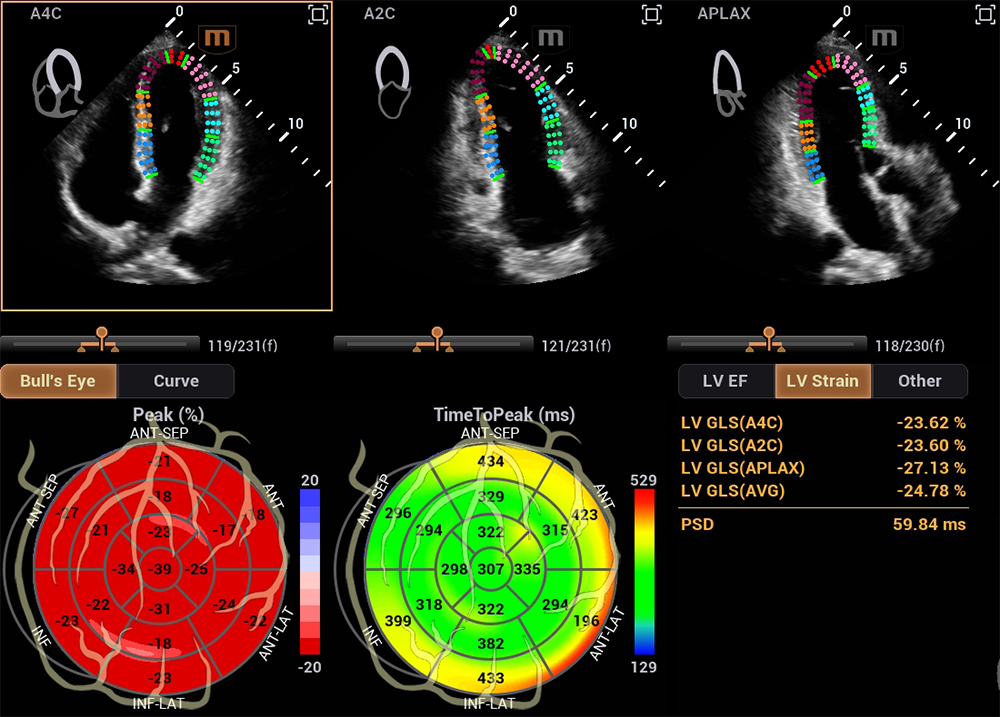 心肌应变技术,能捕捉到肉眼无法察觉的心肌功能改变。如果说射血分数(EF)是观察心脏“泵血多少”的宏观窗口,那么心肌应变就是窥探心肌“是否带伤工作”的微观显微镜——在心脏形态未变、EF 值仍正常时,早期发现心肌功能异常,为心衰、肿瘤心脏病及心肌病的早期诊断提供关键依据。