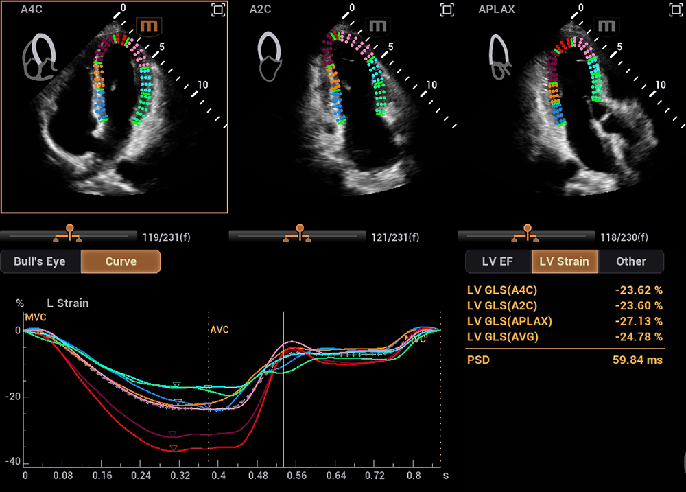迈瑞也在与尹立雪教授团队牵头的合作项目中,挖掘出自动左心室应变评估 Auto Strain LV 更多的临床应用价值,成功让心肌应变检测技术摆脱“心电图(ECG)”的束缚。尹教授表示:“基于人工智能的图像技术,现在已实现无需同步心电图的自动心肌应变分析。该技术操作便捷,检测结果与传统方法高度一致,且能早于传统指标识别心肌功能异常,为疾病早期干预提供关键支撑。”