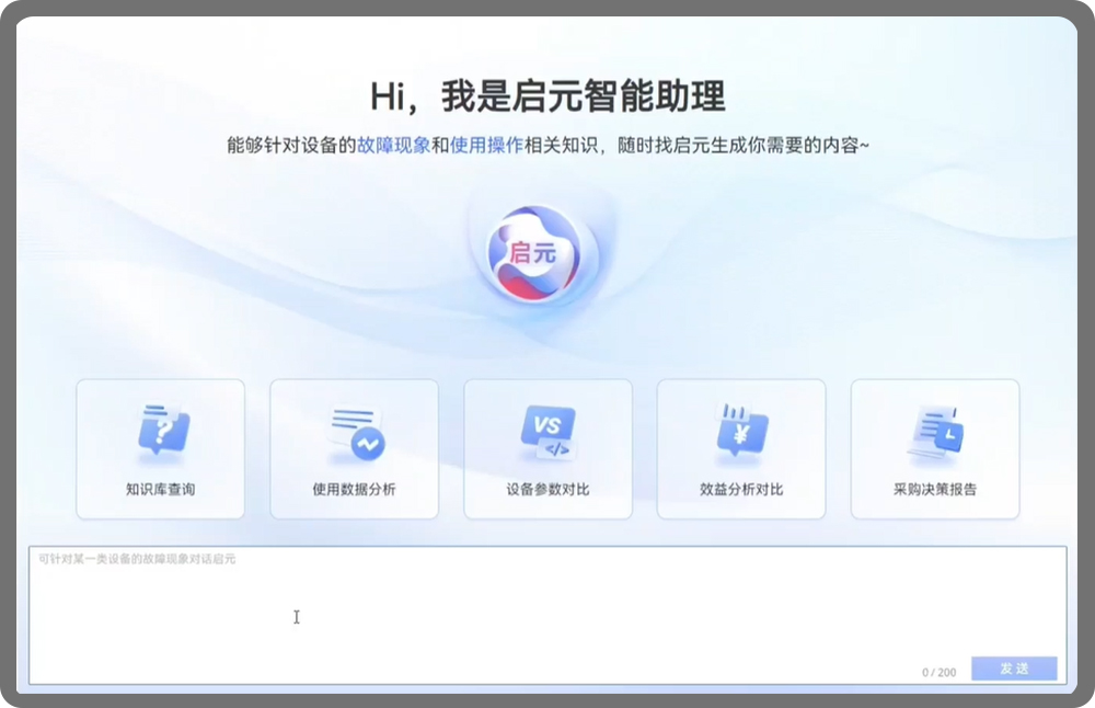 基于启元大模型打造临床智能助手,为日常设备知识查询与培训学习提供 AI 陪练,助力医工人员减负增效 。