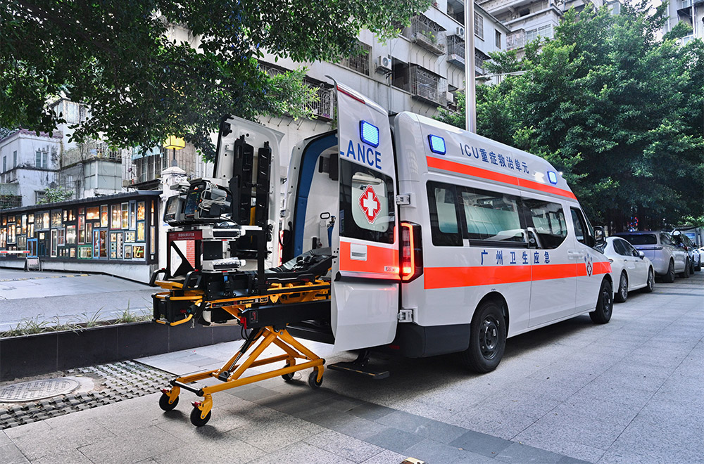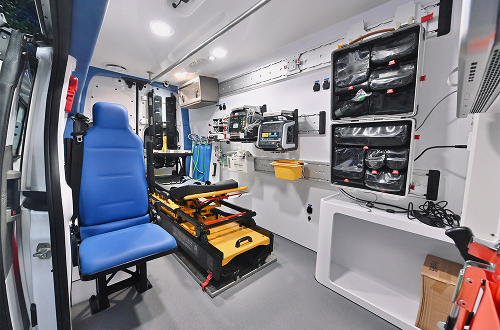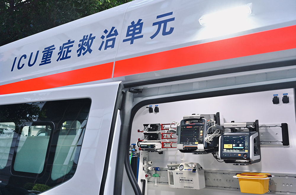 该车辆围绕院前急救复杂的救治需求,配置模块化的行业高端急救医疗设备,并将重症救治设备和病人转运床进行结合,实现模块化快拆设计,将重症患者救治前移到第一现场。
