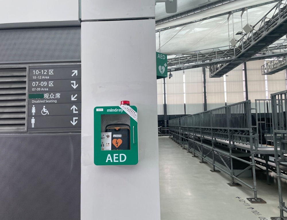 启德体育园是本届大赛香港赛区的重要场馆。在大堂、询问处等多个重要点位,共安装 10 余台迈瑞 AED,场馆 AED 设备的巡检工作也在赛前全部完成。