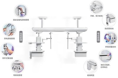 严格按照ISO 11197-2019医用吊塔系统标准设计,满足电源、气源间隔距离超过200mm