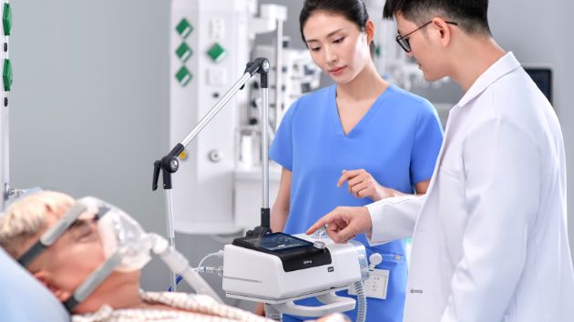 采用迈瑞EasySync™ 同步增强技术,致力于为患者带来舒适有效的无创通气。