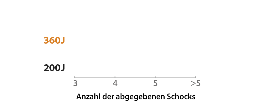 Eine Defibrillation mit 360 Joule kann erfolgreich sein, wenn 200 Joule nicht ausreichen.