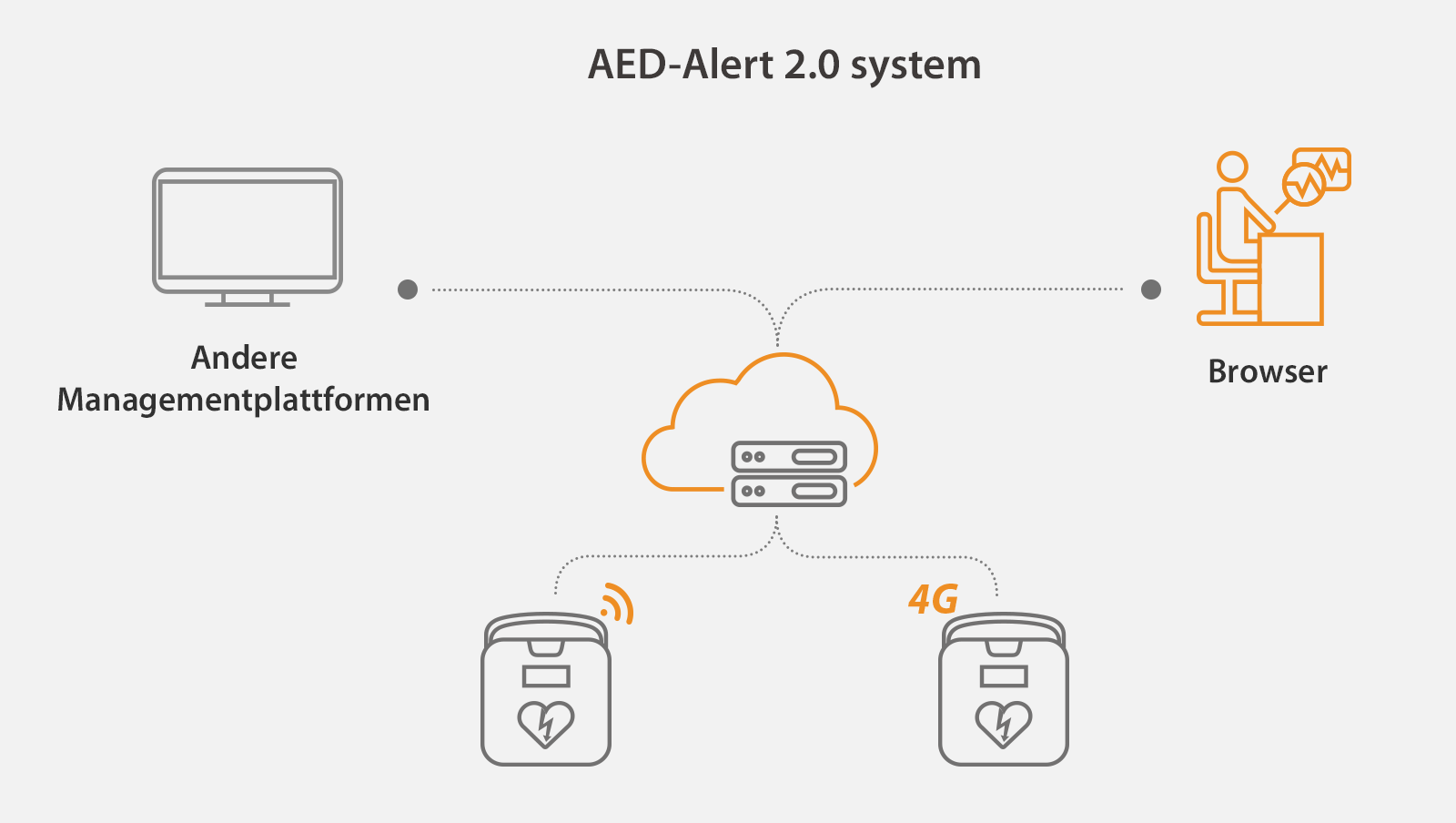 Das von Mindray entwickelte AED Alert 2.0 System ist eine fortschrittliche IoT-Plattform, die dafür sorgt, dass die BeneHeart L-Serie immer einsatzbereit ist.