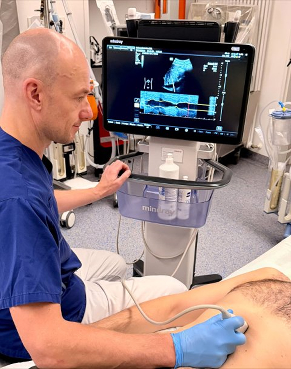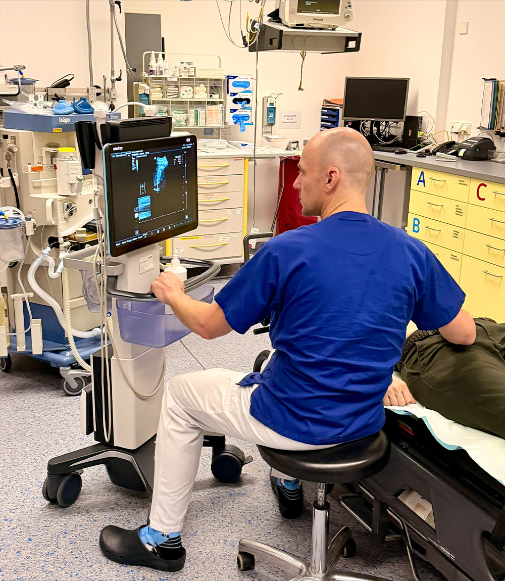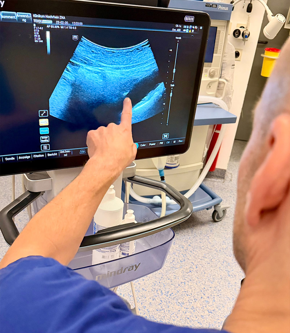 The precise imaging even allows certain radiological examinations to be avoided or at least reduced. For example, a pneumothorax can be reliably detected in lung diagnostics, making an X-ray unnecessary. Bone ultrasound is also now well-established and already provides a sufficient basis for diagnostic decision-making in selected situations. "What the TEX20 also offers is excellent needle visualization," adds Dr. Schmitz. "We therefore frequently use it for catheter placements, punctures of fluid collections, and regional anesthesia."