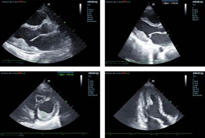 Two-dimensional transthoracic echocardiography was performed on a Mindray M9 ultrasound machine using monocrystal sector SP5-1s transducer. The examination revealed a 20 mm thick hyperechoic mass in the left ventricular (LV) cavity, closely associated with the inferior and inferolateral segments of the LV myocardium. This mass involved the posteromedial papillary muscle, posterior mitral valve leaflet and caused moderate mitral regurgitation. (Figure 1,2).
