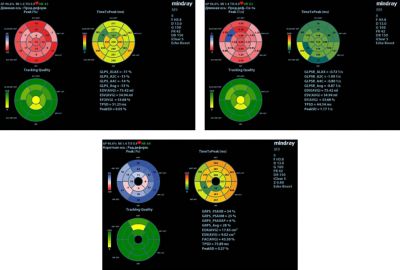 Speckle tracking was performed to assess LV contractility. According to TTQA results global longitudinal strain (GLS), Global longitudinal Strain Rate (GLSR), Global Radial strain (GRS) were decreased. (Figure 5)