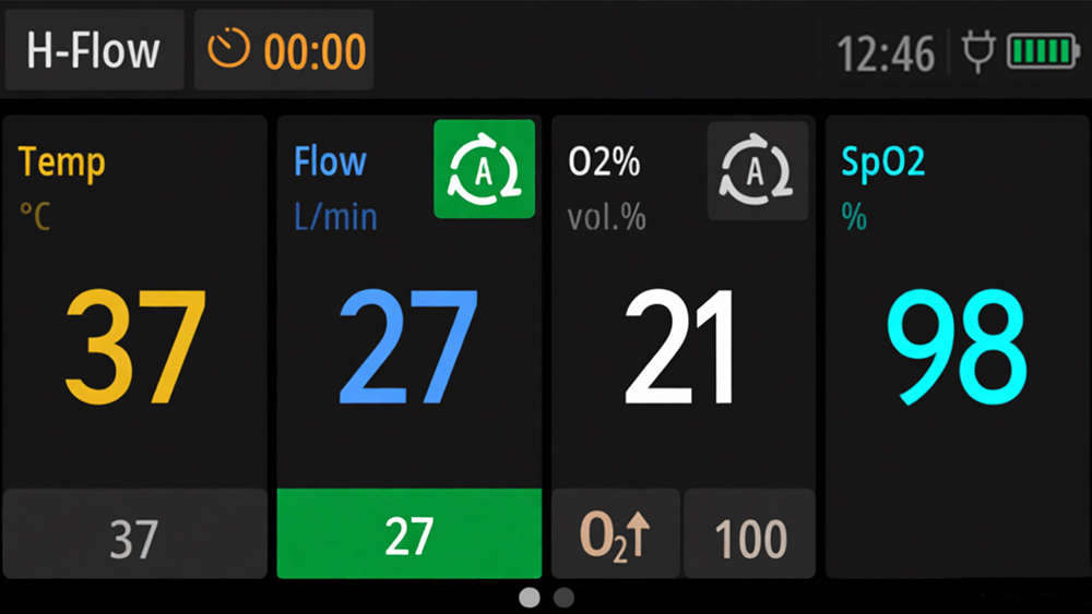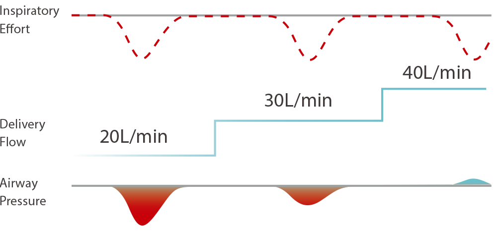 NH9 automates this process by dynamically adjusting delivered flow based on precise PIF monitoring, improving patient comfort and significantly reducing staff burden.