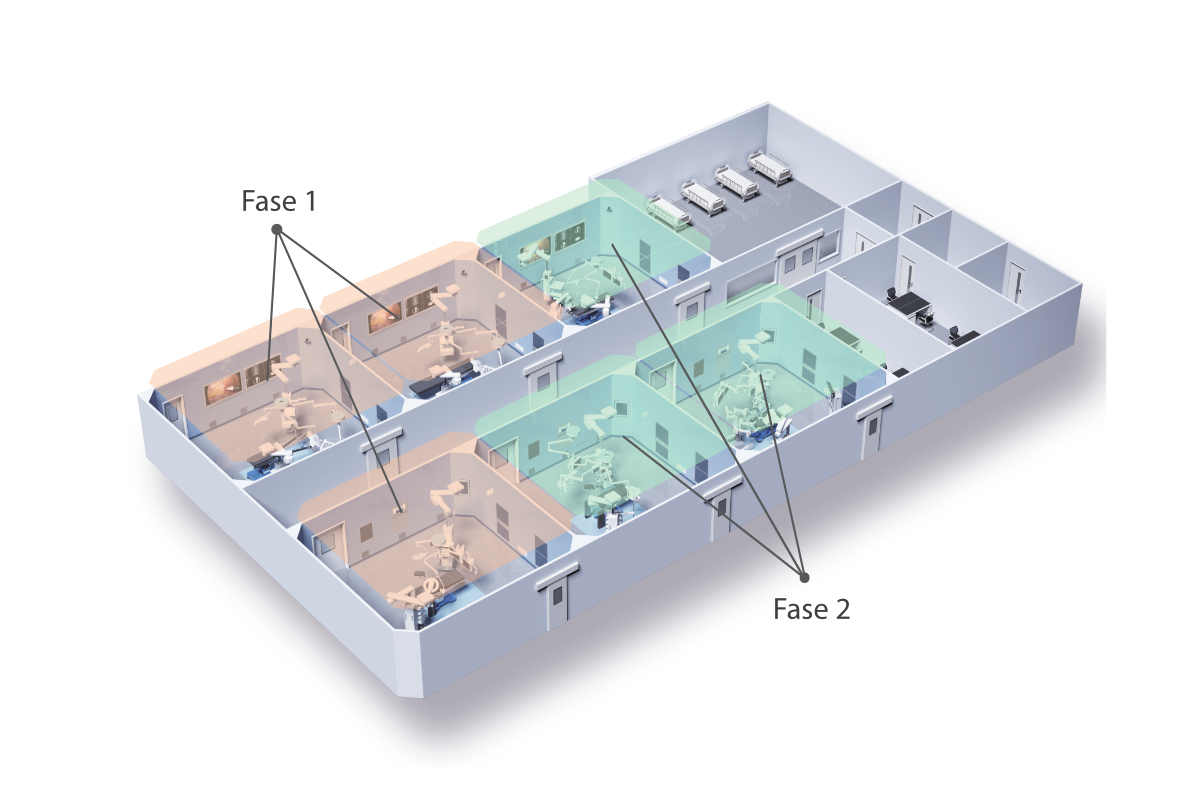 Admite una expansión futura de quirófanos digitales dentro del hospital. Todas las salas están perfectamente interconectadas, lo que garantiza un flujo ininterrumpido de información sin obstáculos.