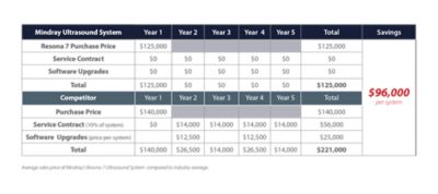 * Standard 5 year warranty is available for systems purchased directly from Mindray North America. Warranties for systems purchased from Mindray authorized agents can vary.