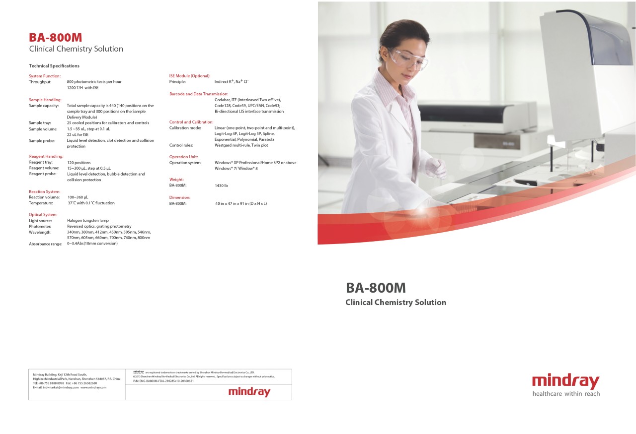 The BA-800M chemistry analyzer is a versatile workhorse, a high volume chemistry platform with built-in sample delivery management (SDM) module. This advanced automated analyzing system is equipped with conventional software and intuitive user interface. The BA-800M is a perfect analyzer for today’s fast-paced laboratory environments. The board selection test menu includes general chemistries and electrolytes serving the needs of most clinical laboratories and hospitals.