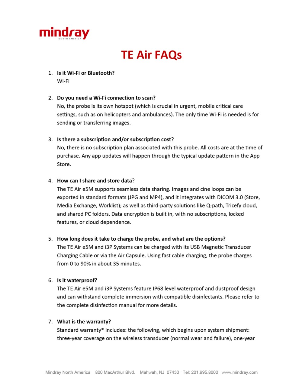 Purchase from Mindray includes comprehensive clinical training and 24/7 remote technical support.