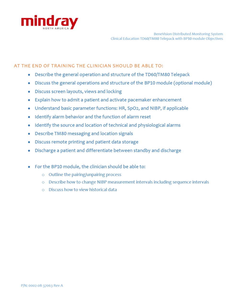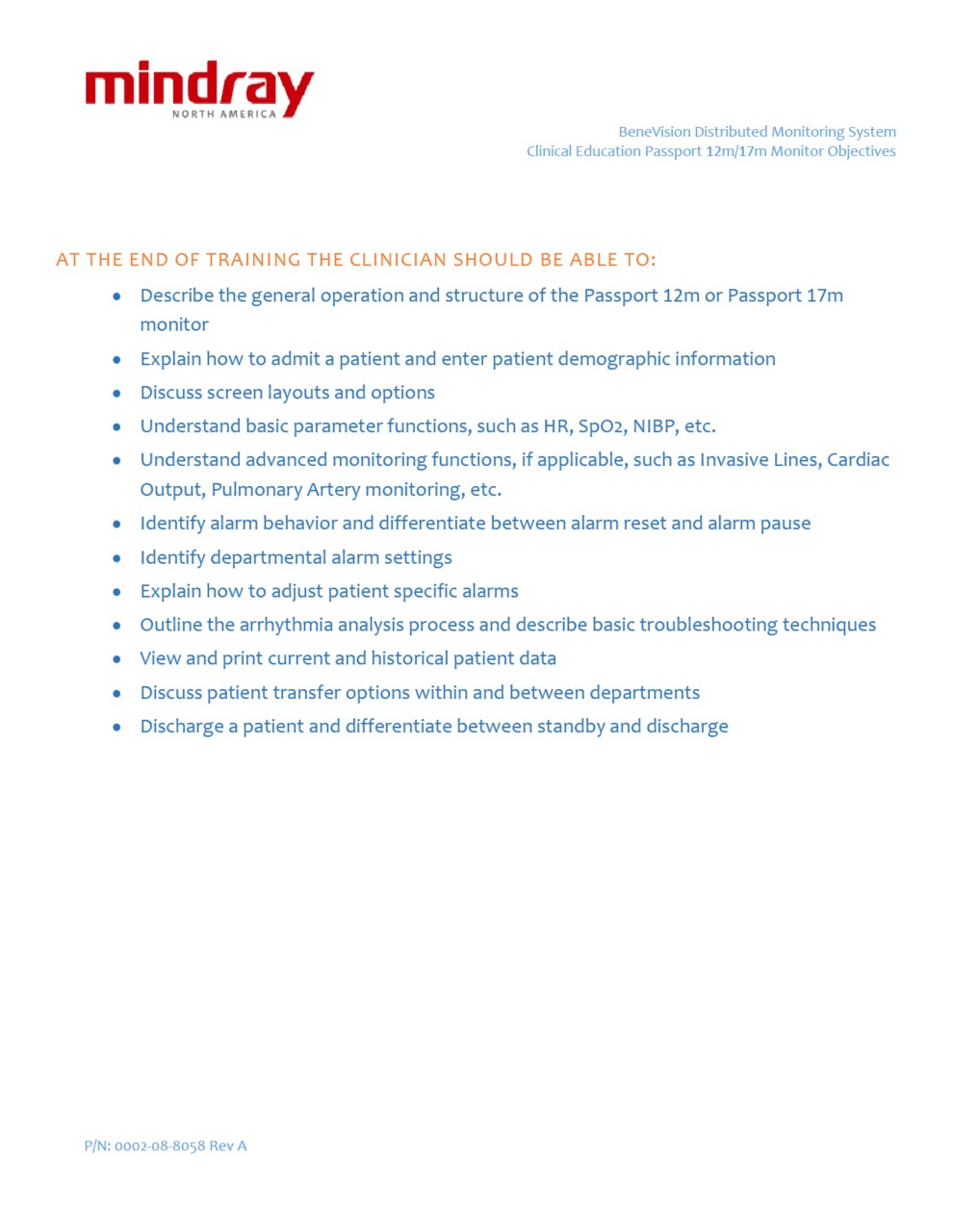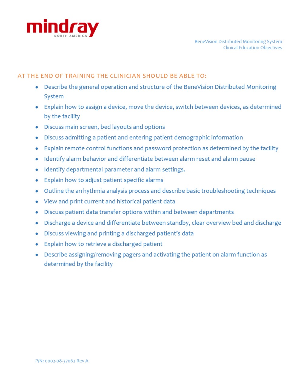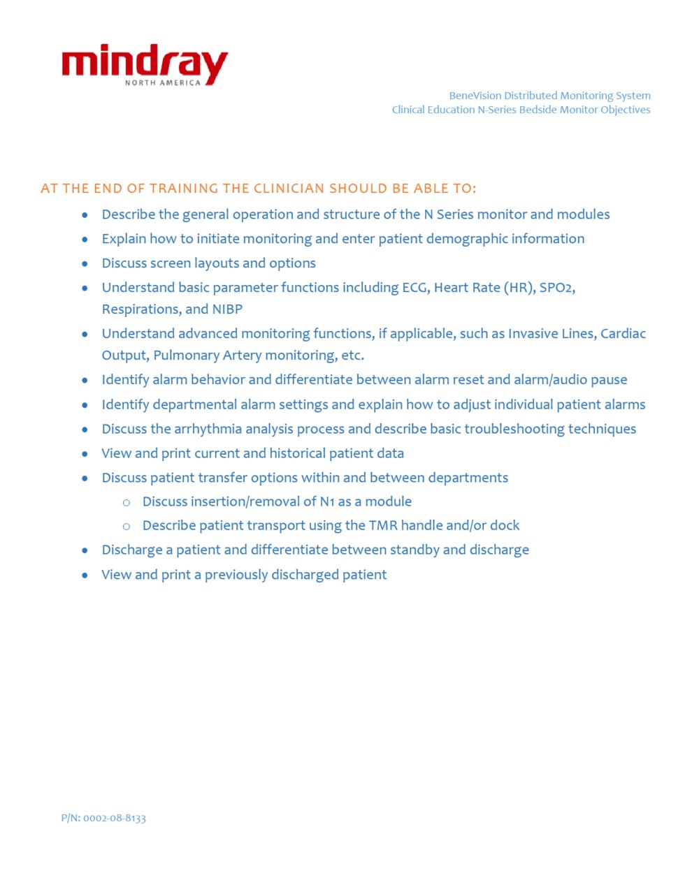 The Mindray Clinical Education Program is designed to address the most critical day-to-day clinical challenges while providing your staff with a smooth go-live. Clinical education plays a vital role in supporting your nursing staff with the knowledge and skills needed to make the most of Mindray’s advanced technology.