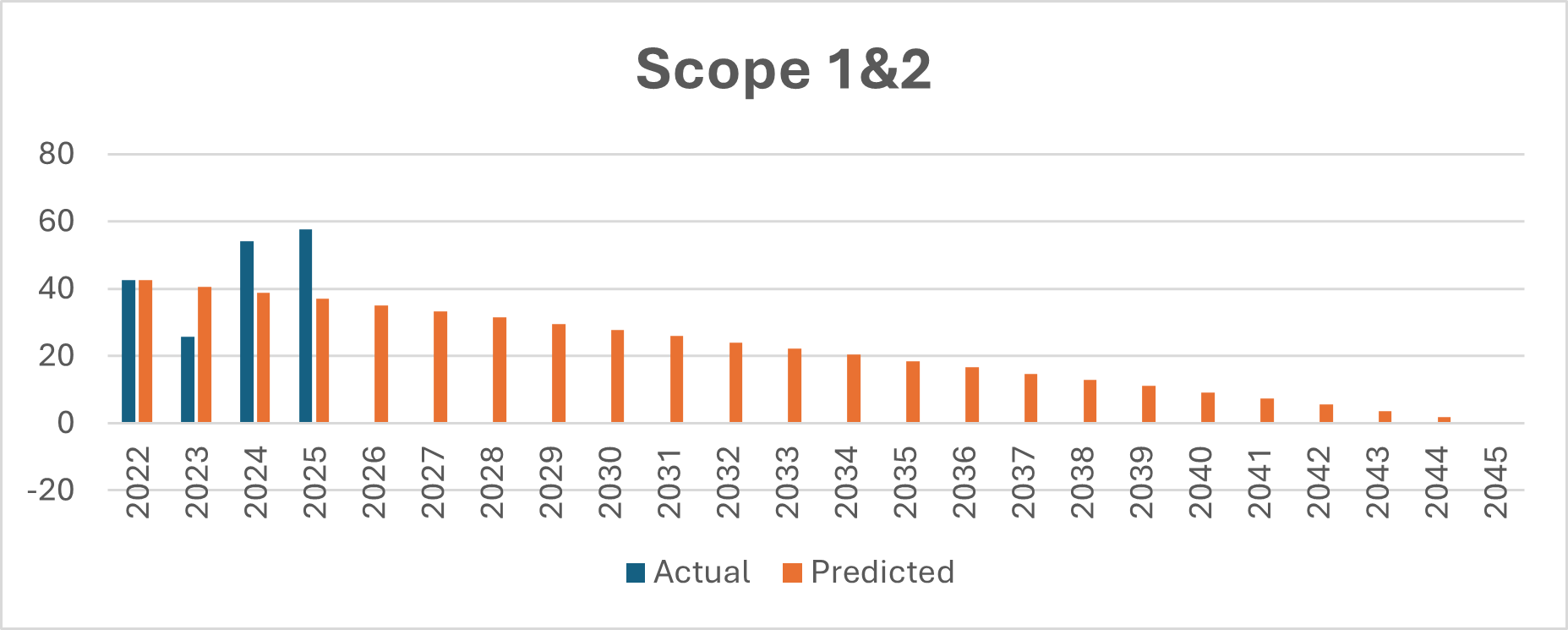 Scope 1 and 2 (2025): 57.64 tCO2e Scope 3 (2025): 973.02 tCO2e |