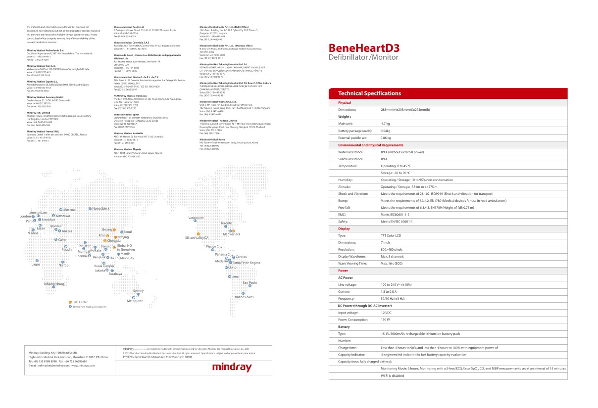 With a 4-in-1 integrated design (manual defibrillation, AED, pacing, and monitoring modes), the durable and light-weighted BeneHeart D3 puts any unexpected circumstances under your control.
