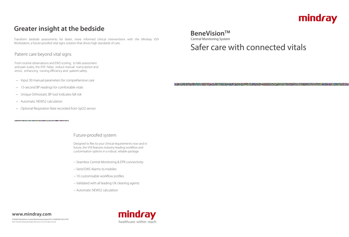 The Mindray VS 9 Workstation goes beyond vital signs to improve patient care and optimise bedside assessments.