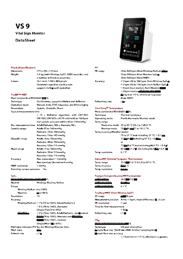 * Mindray provides 3 options of SpO2 measurement, Mindray, Masimo and Nellcor. For further information about the availability of Masimo and Nellcor SpO2, please contact your local sales representatives.